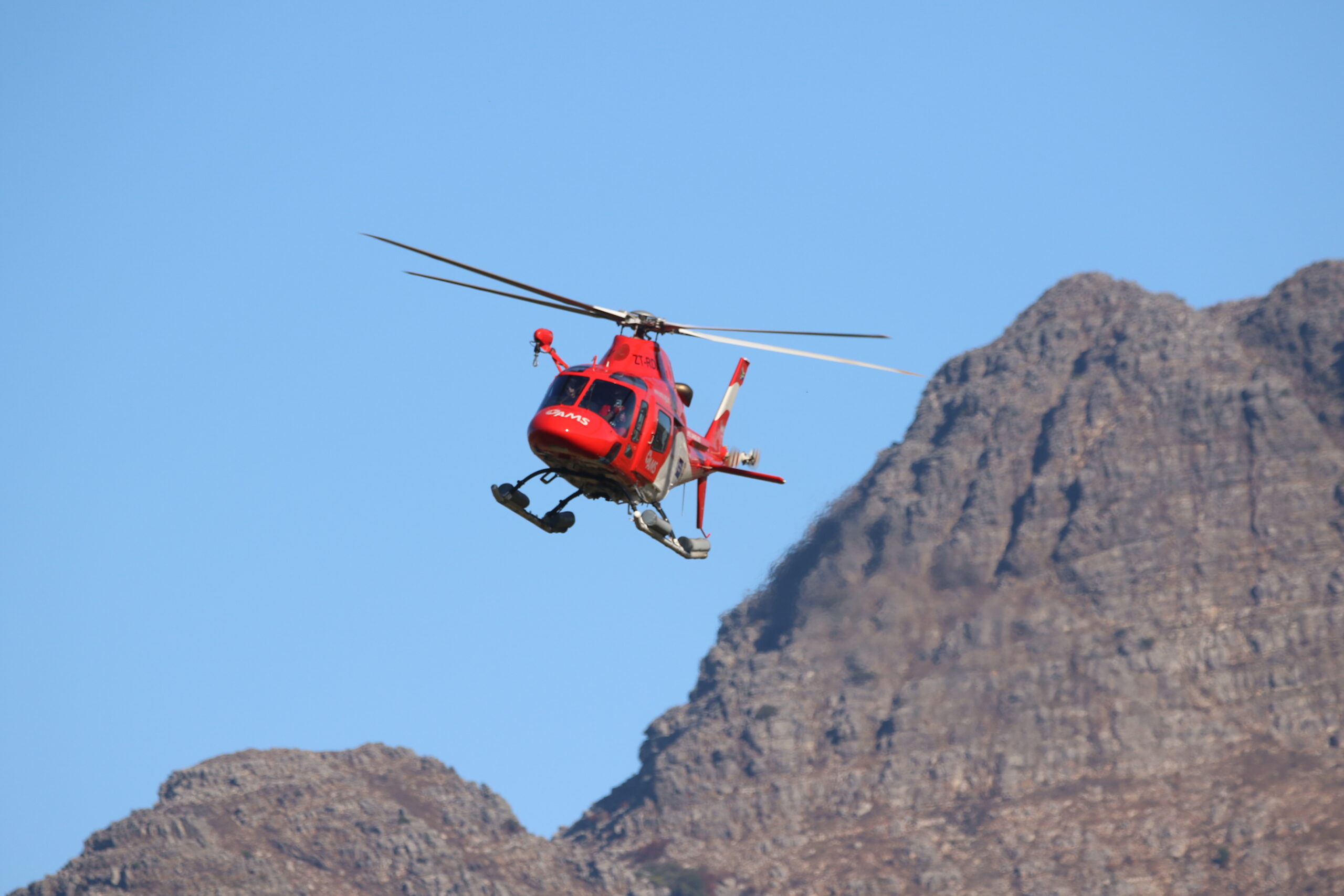 24 July 2022: The Western Cape Department of Health EMS/AMS rescue helicopter has had a busy day with mountain rescues in Cape Town. Sadly early this morning the rescue helicopter was dispatched for another body recovery on Table Mountain. Shortly after returning to base, the rescue helicopter was dispatched to Stellenbosch to airlift a patient who had been attacked by a swarm of bees. While busy on this rescue another mountain call came in. The rescue helicopter was dispatched yet again to Chapman’s Peak to extract injured hikers. Our sincere & heartfelt condolences to the family and friends of the deceased, our thoughts and prayers are with you. We wish all the injured hikers a speedy recovery. Images credit: Franna Smiley Lombard.