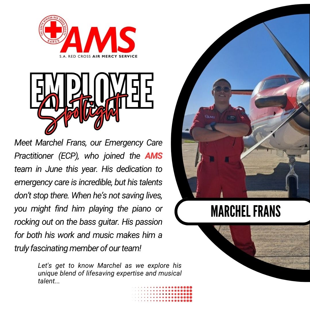 “My name is Marchel Frans, and I am an ECP flight paramedic at AMS. I grew up in Eerste River, Cape Town, where I was immersed in a vibrant community and the breathtaking landscapes of the Western Cape.